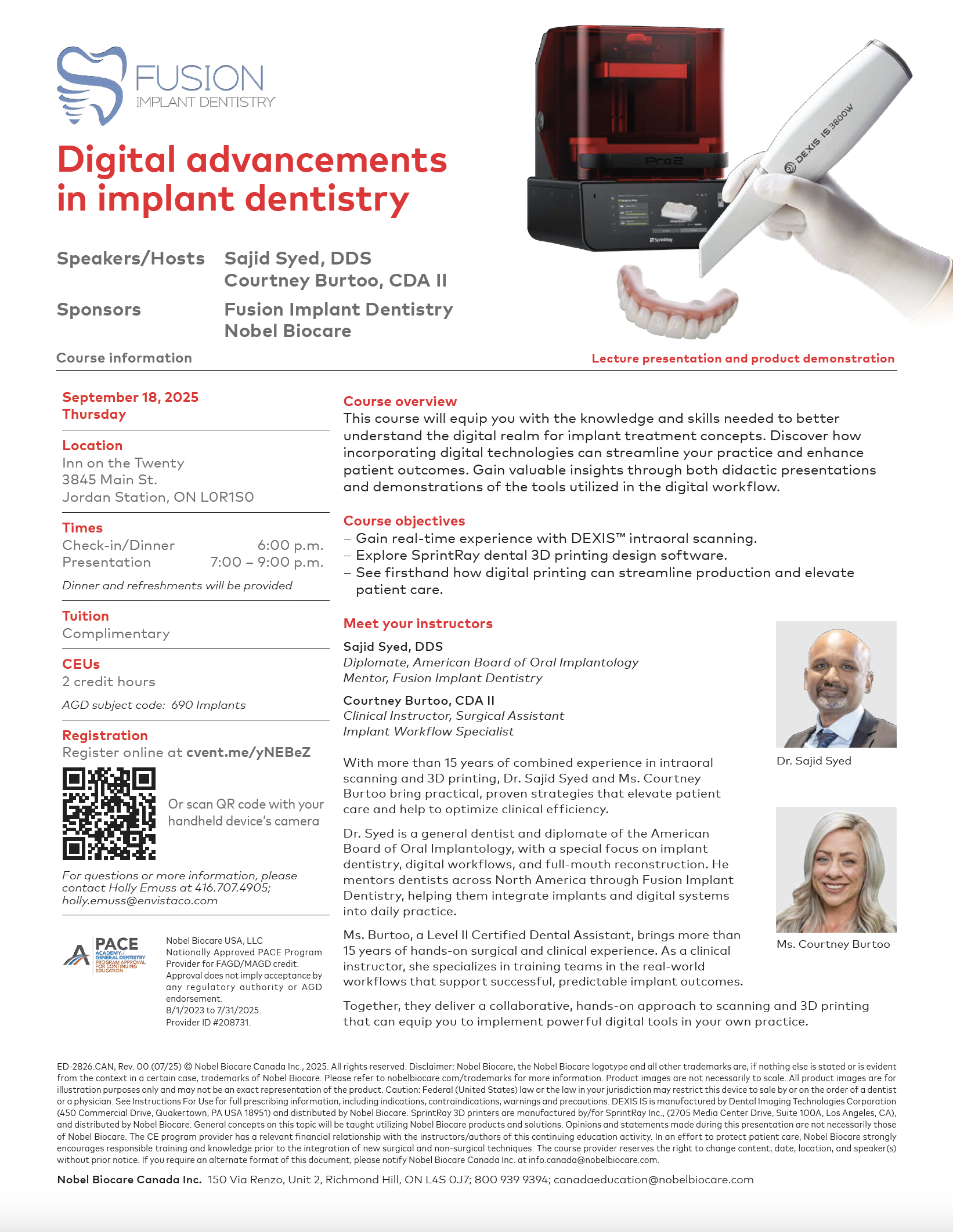 Enhance your implant dentistry skills with hands-on experience in digital planning, guided surgery, and 3D printing. Learn how to streamline your workflow for precision and efficiency.